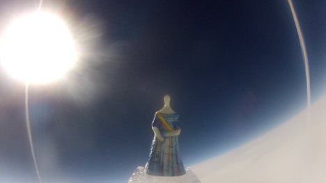 A cápsula atingiu a estratosfera cerca da 15 horas e 40 minutos tendo atingido a horta do senhor João Vaz às 16 horas e 30 minutos.
